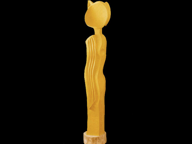 Sculpture en Noyer polychrome, hauteur: 2.10m